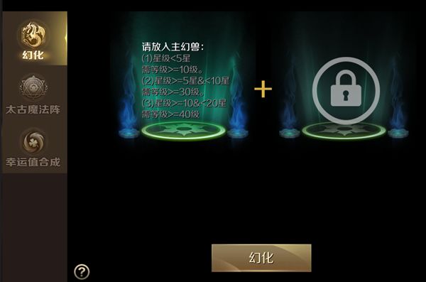 幻化:幻化主要是可以让幻兽的属性成长,是提升幻兽星级的主要途径。