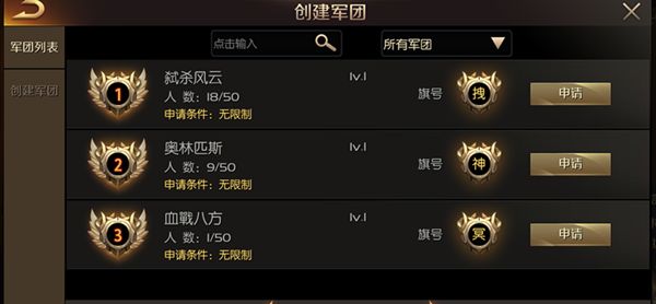 想加入军团有两个方法,一个是自己主动找军团申请加入,一个是让军团的人加自己。