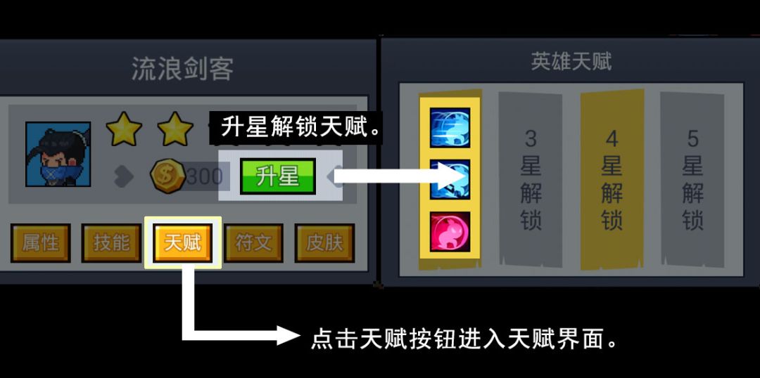 升星英雄,解锁天赋层。不同天赋搭配会有不同的战斗体验。下面附上介绍。