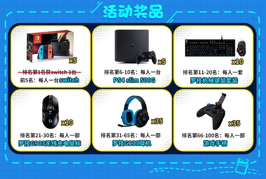 集结人数排名6-10名:每人一台PS4slim 500G;