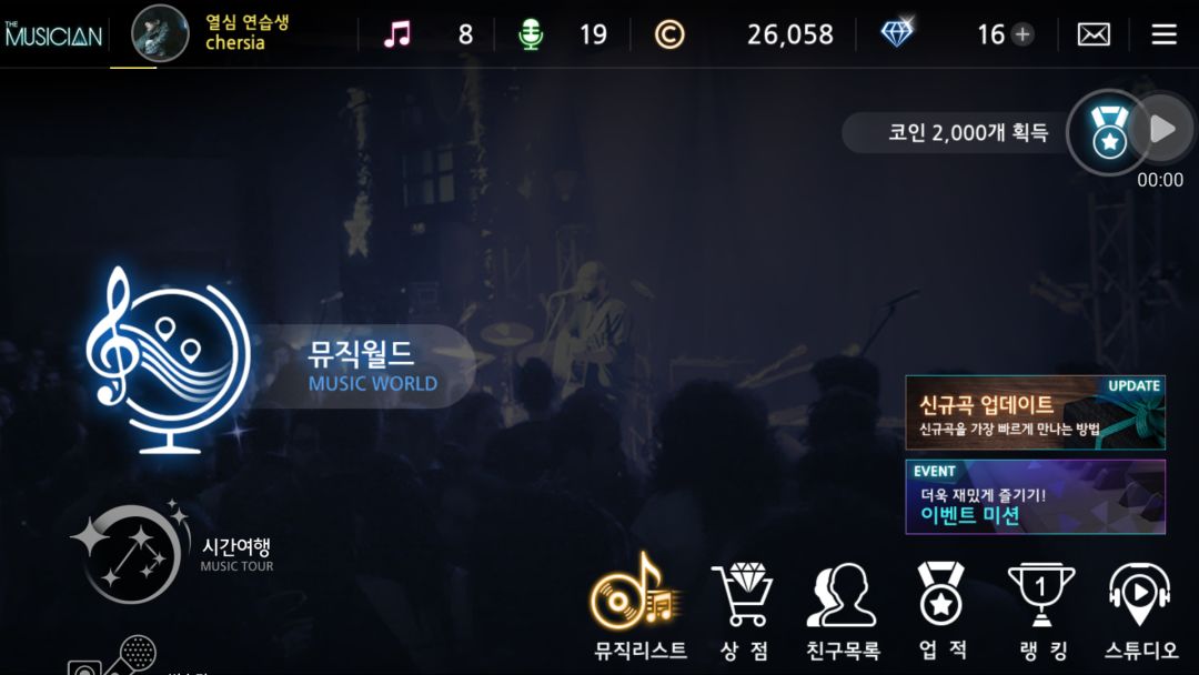 游戏点进去是这个界面,左边是游戏模式,有闯关的,时光穿越的,翻唱演奏的和限时免费玩的。这个我找时间讲解一下。