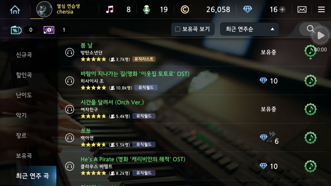 左边一列子分类我也没搞懂,不知道是按风格还是改编人排的...真心韩语不好kkkk