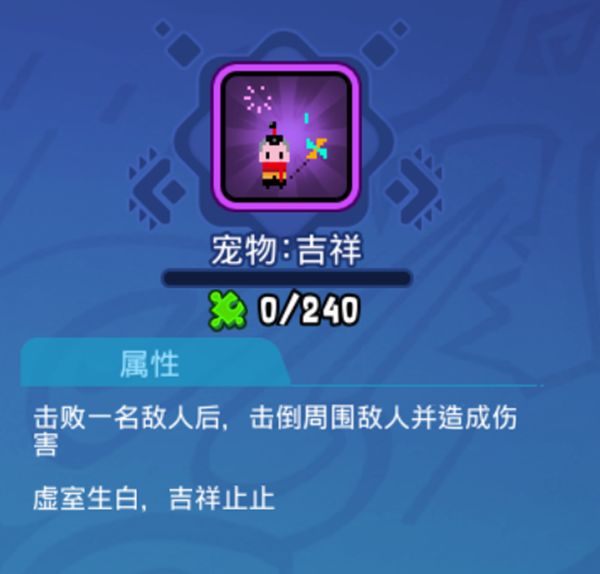 如果因为吉祥可爱的外表而误以为是一只辅助作用的宠物那就大错特错了,在震荡水修改后的如今,他是为数不多能够令携带者将范围性敌人击倒的宠物,一名拥有“吉祥”的进攻型选手冲入地方阵营,输出能力将提升好几个档次。