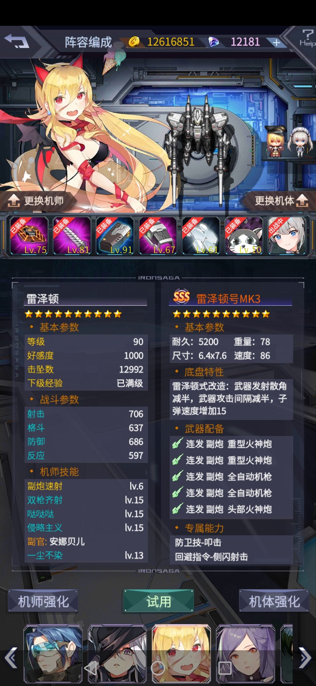 重点看副官,带净化,辉夜装甲是对爆射,净化能有效提高输出。