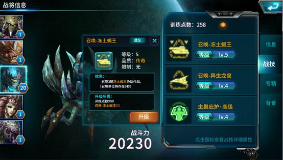 出场战斗带领部队的指挥官,每个种族拥有5个各具特色的指挥官,每个指挥官都有独有的战斗方式以及专精方向。