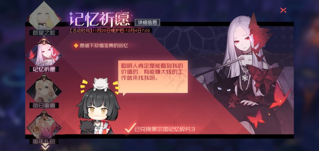 注意:白夜馆30抽活动的自选碎片是到4号就过期了,所以那个必须要在4号之前兑换掉