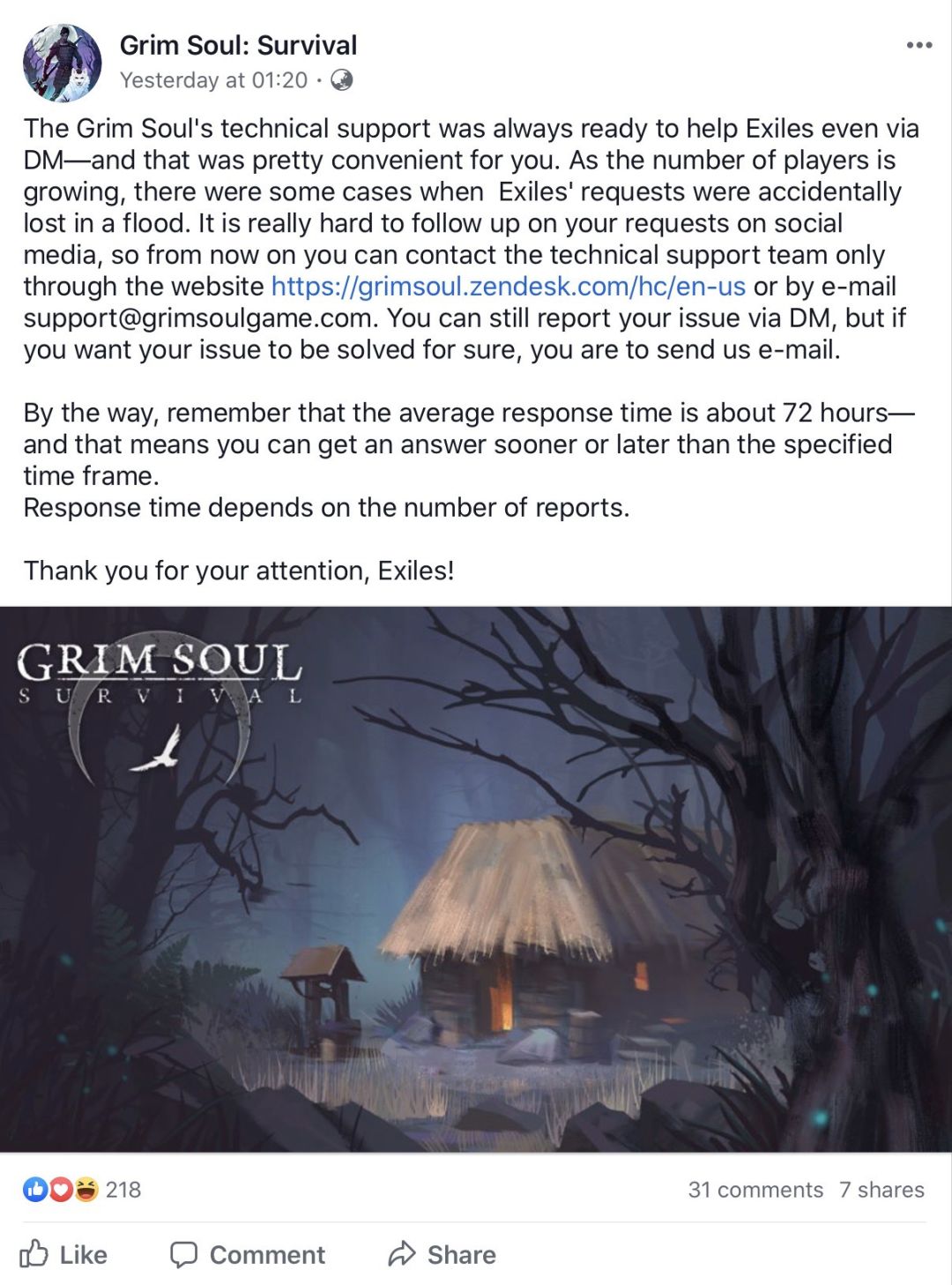 冷酷灵魂的技术支持永远服务于流亡者,即使是通过dm对你来说也会很方便。随着玩家数量的增长,有时流亡者的请求会意外丢失。在社交媒体上跟进你的请求真的很困难,所以从现在开始,你只能通过网站https://grimsoul.zendesk.com/hc/en-us或电子邮件support@grimsoulgame.com联系技术团队。您仍然可以通过DM报告您的问题,但是如果您希望您的问题得到解决,您可以向我们发送电子邮件。