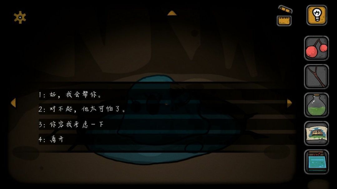 接下来,我们的山洞就变亮了,下面换场景就会到爱丽丝了——水元素的不明生物,这里她需要让我们去找罗德先生,我们答应以后,就可以出山洞了。