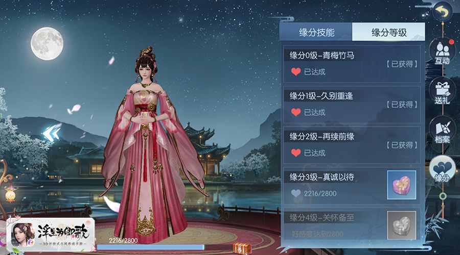 丰富有趣的剧情、人设饱满的角色一直是《浮生为卿歌》手游的特色之一,而游戏中的结缘玩法亦是如此。结缘玩法不但可以攻略自己喜欢的NPC,了解他们的故事,还可以提高缘分等级以获得各色奖励,在相知相伴的基础上,与他们建立独特的羁绊以及友谊,让自己的汴京生活不再是孤单一人。