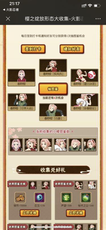 活动持续一周,截止到4月3日5点,简单来说就是通过每日签到打卡以及链接分享获得抽图鉴的机会,用收集到的小樱图鉴兑换相应的奖励,奖励比较一般,顺手做了就好。