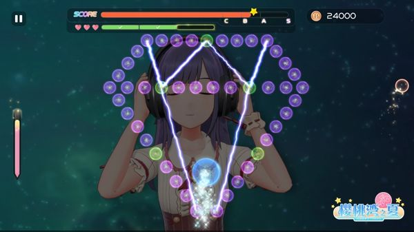 策划士大夫:基本表现定的很快,沉浸在音乐世界中寻找灵感的少女。但是模拟“寻找灵感“的过程不太顺利。最开始定下的模型是用”吃“灵感泡来获取灵感,这个一直保留到了最后,而关于吃灵感的主体和灵感泡的刷新则迭代了很多版本。最开始想做成一个弹幕游戏啊,在随机出现的灵感弹幕中尽量抓住更多的灵感,后来迭代成在限定时间内,吃到尽可能多的随机刷新的灵感,之后又修改了好几版,最后定下了这个类似于”一笔画“的玩法,模拟一口气抓住全部灵感的过程。