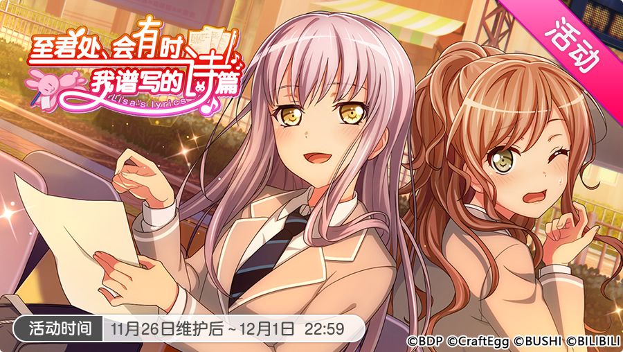 11月26日维护后,游戏内将开启「至君处,会有时,我谱写的诗篇」活动和「夕照下的Smile Star招募」,追加原创歌曲《ONENESS》!