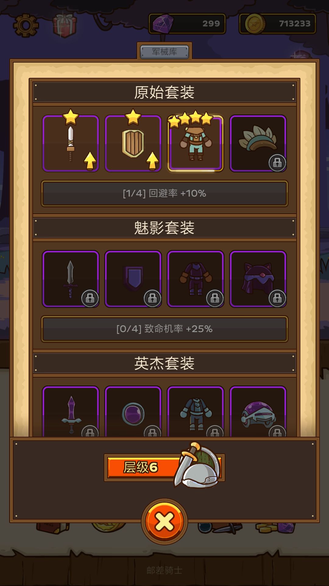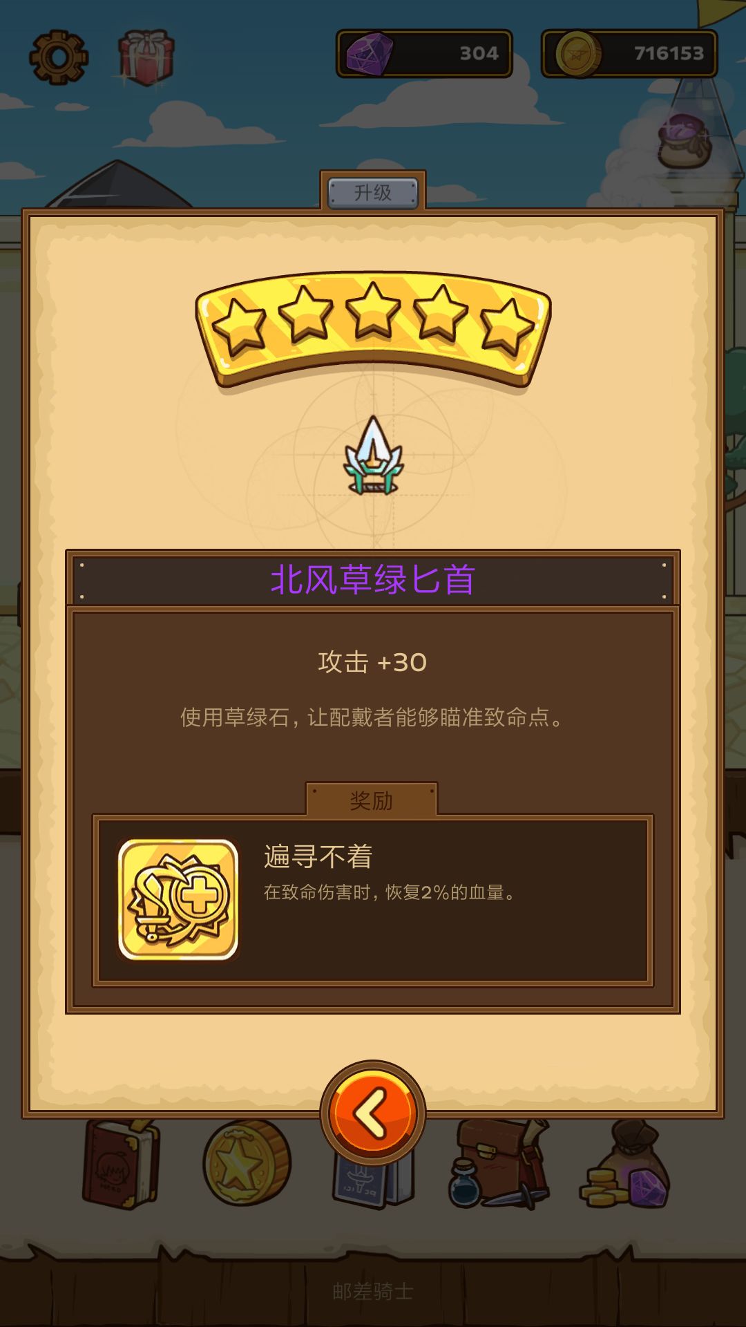 加倍冲锋和眩晕盾牌这个组合很好用,加倍能增高控制几率,控制住后野怪不会反击,配上高暴击野怪任人宰割,配上五星北风匕首的回血即可通关,上图(智慧和体力可以不加,除了北风都可替代)