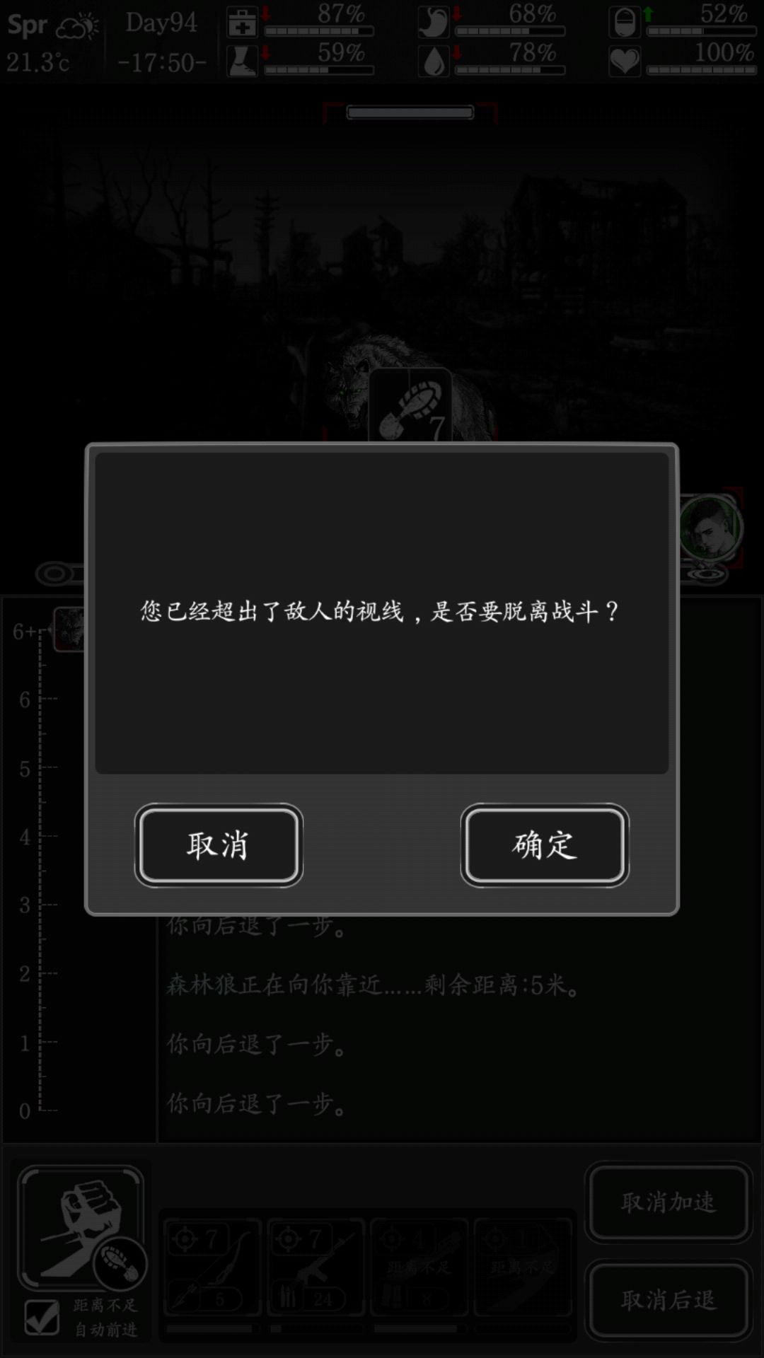 6:战斗前可以看怪的数据,打不过的就算进入到战斗页面可以跑,空手然后一直后退就行 ,看图。同理,也可以风筝。怪掉的血清可以和斯蒂芬邹换东西(珠宝 金块 信号枪还是不错的)