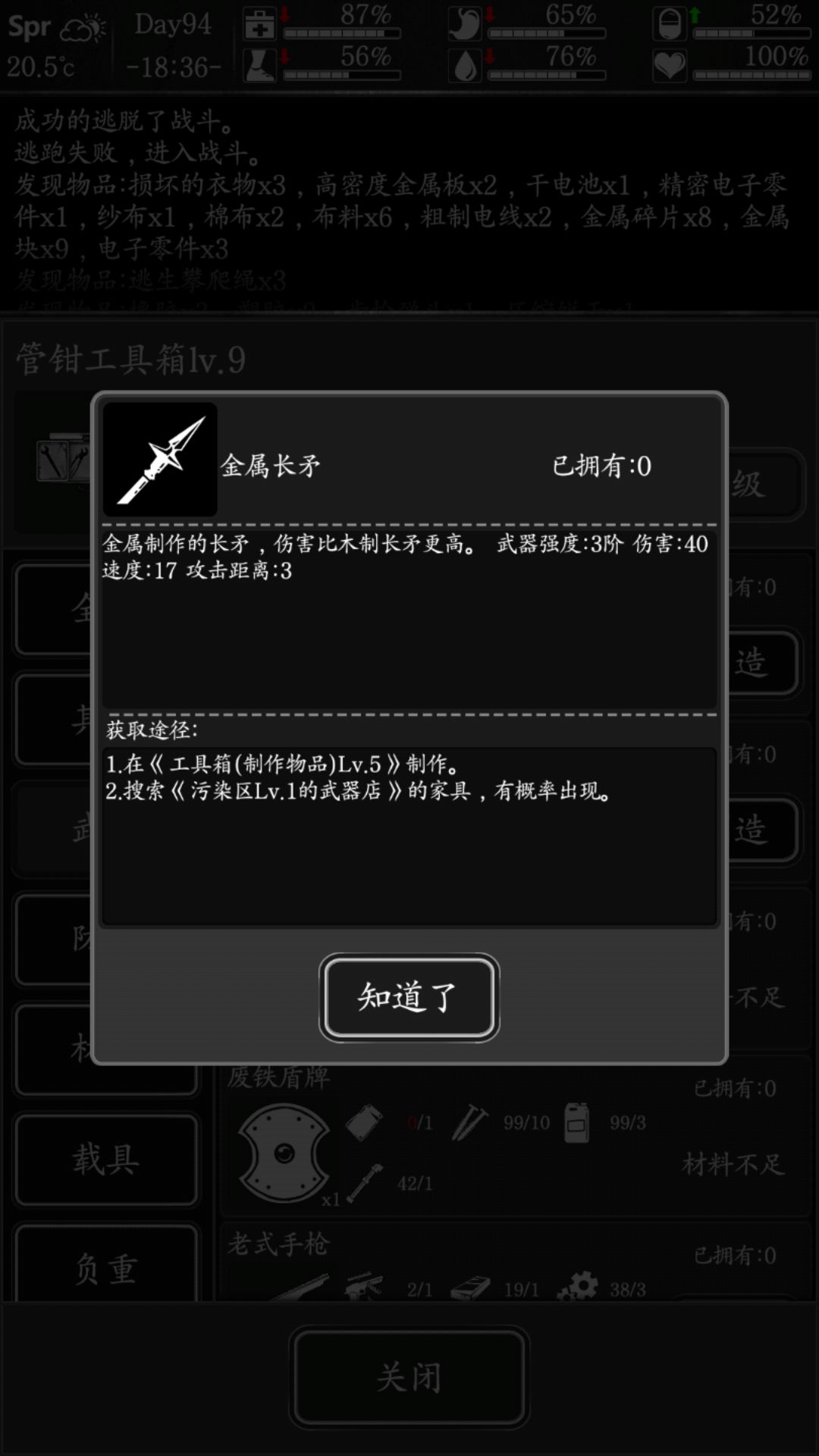 1:前期先搜东西升到做出金属长矛(很好做的),打1 2 3级怪无伤,有4级怪了就要做土质炸弹了