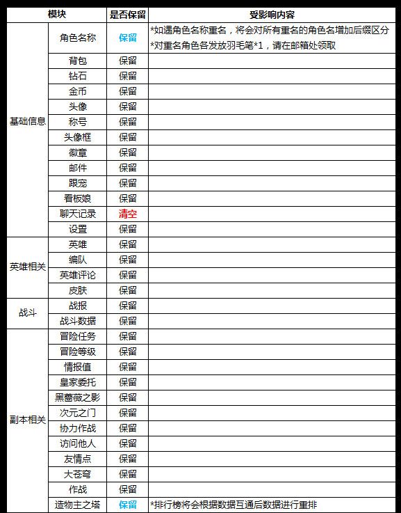 2.互通后,如遇角色名称或公会名称重名,将会对所有重名的名称增加后缀进行区分,并各发放改名道具,其中公会改名道具“公会名册”将发送至会长角色邮箱中。