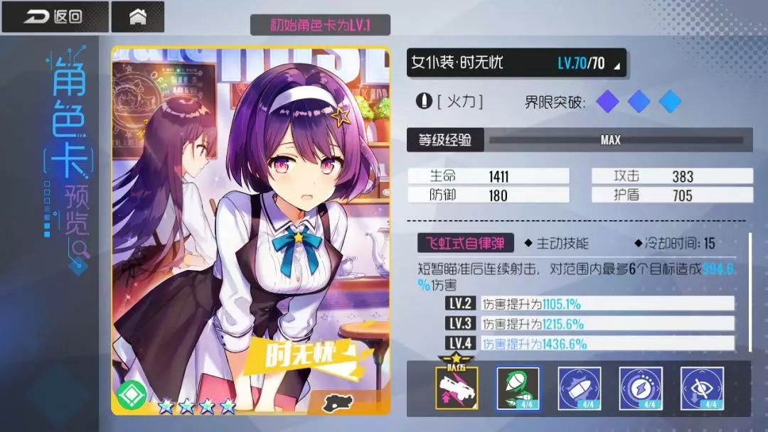 评价:唯一四星强袭卡无脑练就完事,泛用性极强,但对不吃点燃控制的boss,主动固定伤害破盾表现一般,强烈推荐用金色训练仪让千姬升4级主动。