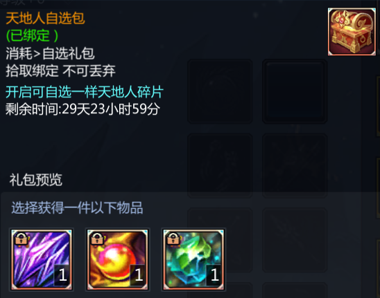 相信很多小伙伴对天地人自选礼包都不陌生,其中获得的凌霄碎片*天时、万象神丹*地利以及五彩灵石*人和可是一些很稀有的镶嵌卡、翅膀和坐骑的重要合成材料。