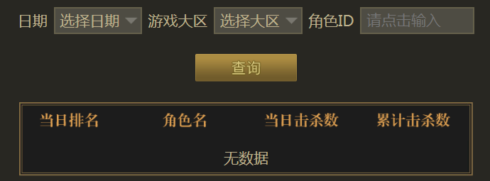 5、每日百强榜将于每日00:30后显示昨日数据;个人击杀数据实时刷新,输入信息即可查询(数据刷新可能存在一定延迟,可等待一段时间后查看)