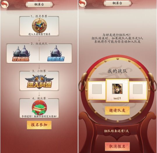 此前,铜雀台乃各区榜上有名的大神组成代表队出战的巅峰赛事,神仙打架。开发团队为在游戏内举办更平民的竞技赛事,精心筹划推出了铜雀台的“战队模式”,玩家们可以自由组队,征战四方并且获得赏金。