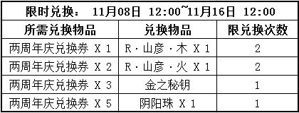 两周年庆交换券在限定期间兑换下列道具(R 轮唱·山彦 火与 R 轮唱·山彦 木在交换所妖怪栏内):