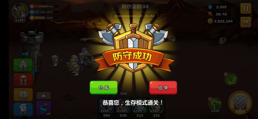 另外前面六关城堡和小兵不要升级,完全可以站撸(4级弓),五级弓如果顺的话9关前不用升城堡小兵。(升级城堡小兵容易卡经济导致后面经济不够,有钱那就随意。)第九关没到40级有点困难。