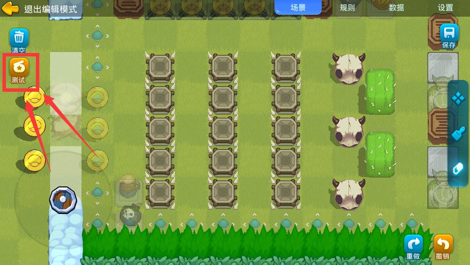 辛苦了半天,终于把地图做完了!到底有没有达到你想要的效果呢?设计上有没有bug呢?点击左侧的“测试”按钮,可以随时对你的地图进行试玩测试哦~