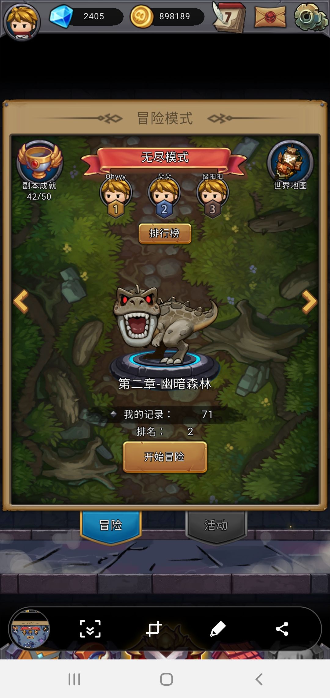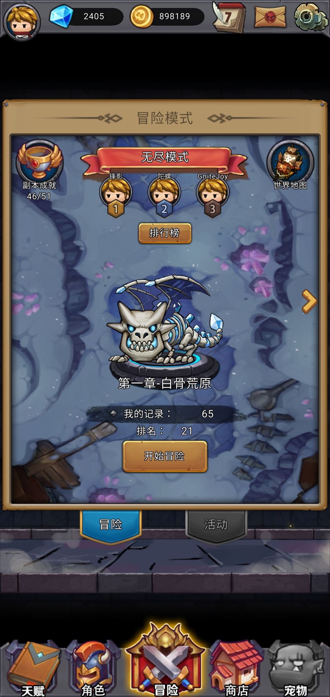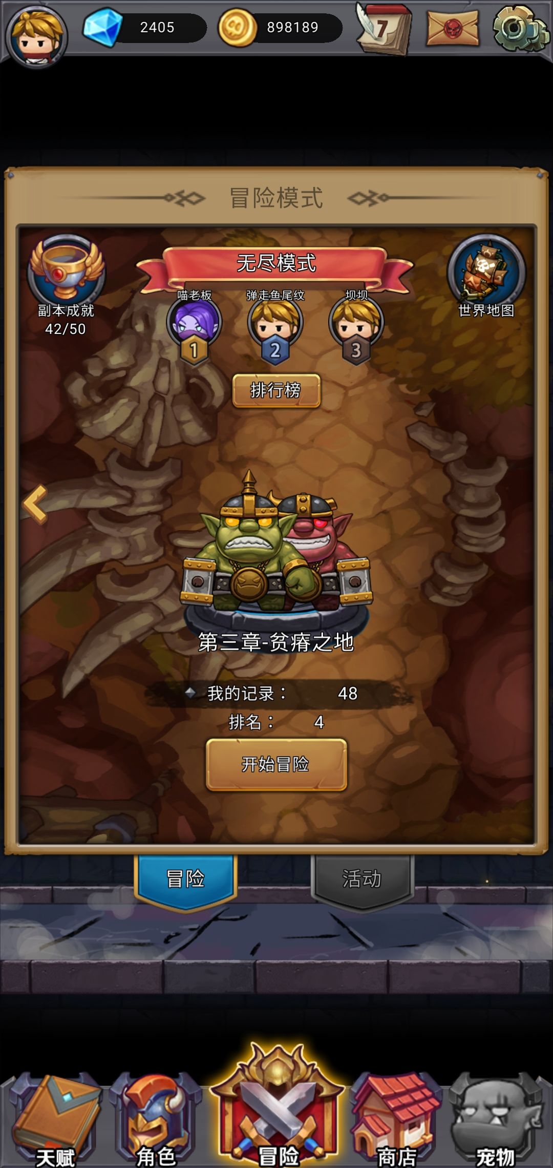 5.小关卡,共15关,每次下降一格那个关卡,精英的话最费时间,40层,5万-8万血,打的那个累啊(只有一星武器,因为冒险杖无可代替。。遇不到3星,一星也得一直带)。