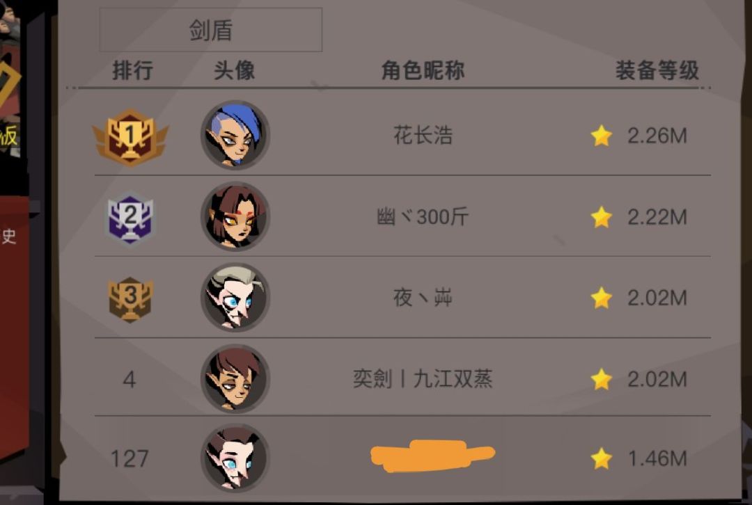 换把剑盾武器就进前两百了,小号是剑盾也卡精三,再这么下去干脆删了吧