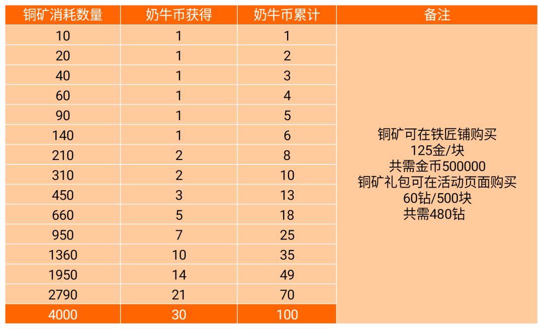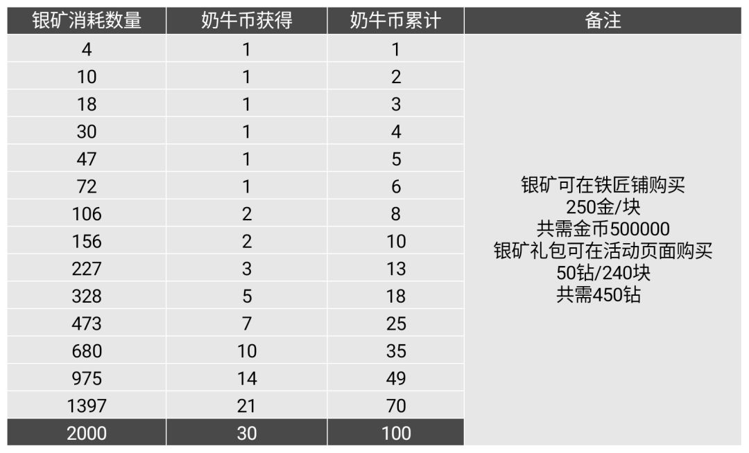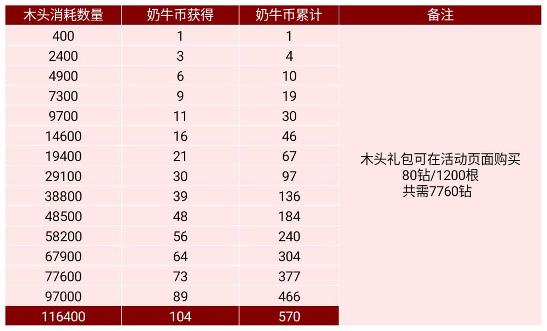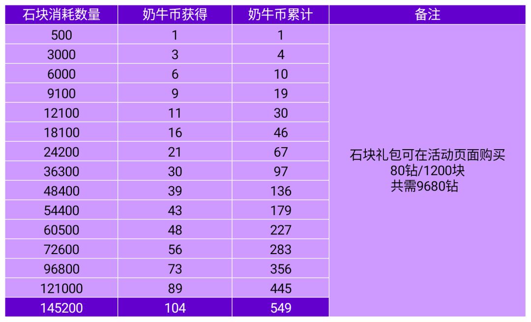 【愚人节活动】活动消耗及奶牛币收益表【更新石块试炼】