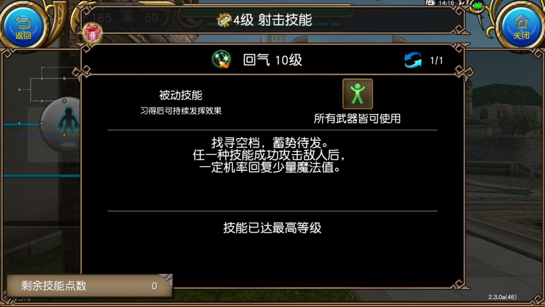 回气,要不要点10,经过实践,我认为双剑技能的连放,应用连击次数比较多,在用的过程中有几率回蓝100,回蓝效应还行,建议点满,碰碰运气。