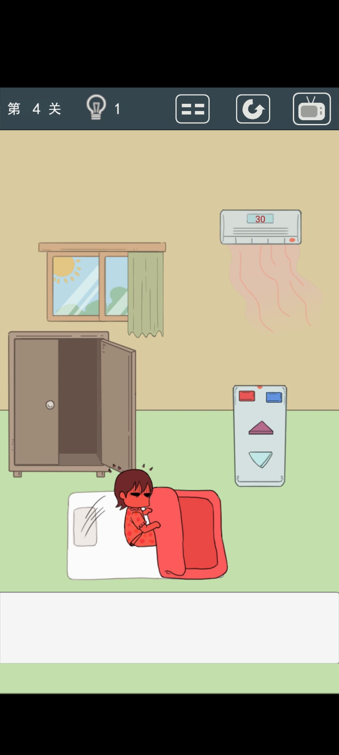 4,点窗户得遥控器,调到30,把窗户关上,热到主角怀疑人生