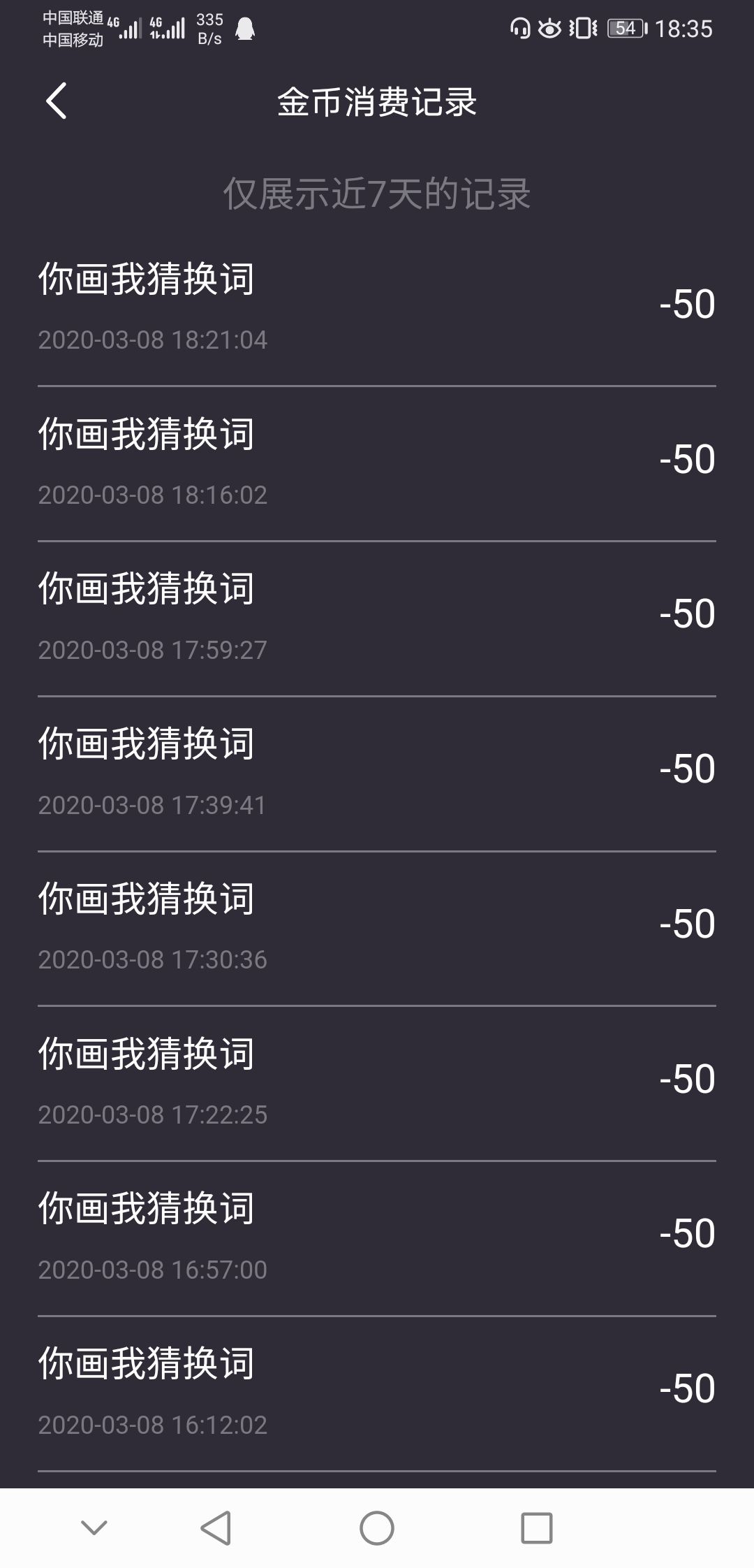 别的板块你们估计看不到,更新后画猜不换词玩一把扣50金币,旧版没事。都是我和小伙伴的截图