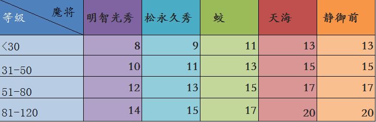 魔将经验表: