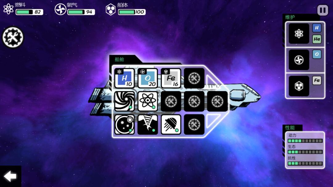 玩家初始的飞船,资源和装置都在船舱内。