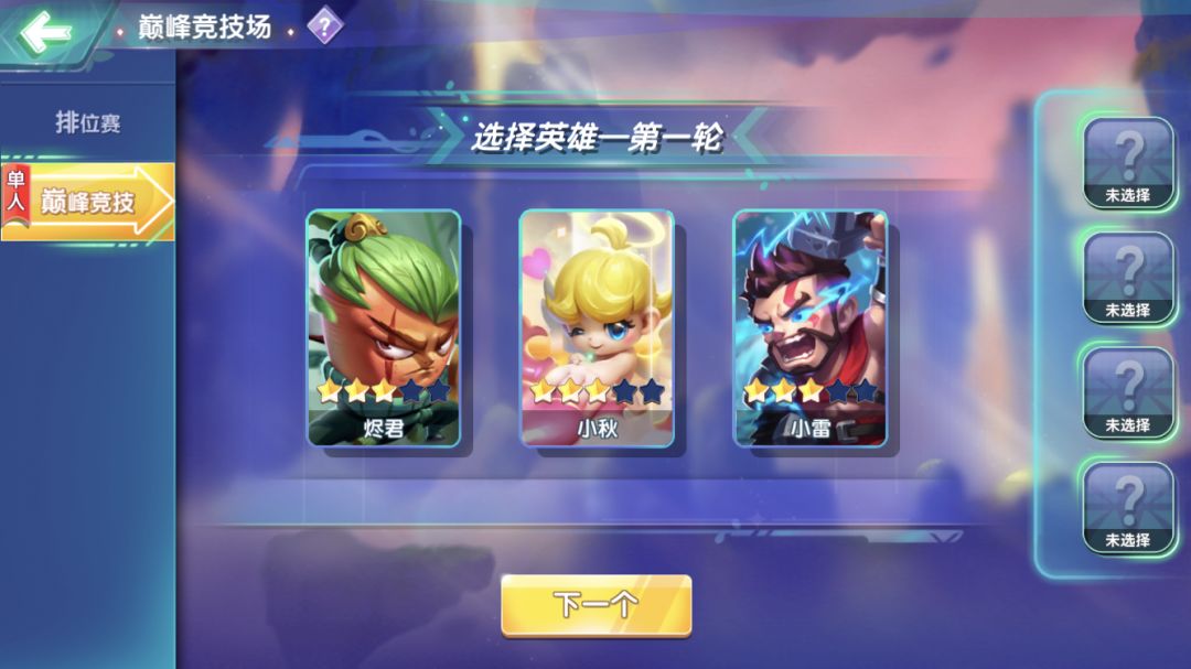 4,巅峰竞技:单挑,我要单挑!!!来了来了,当您到达16级之后,将会为你开放巅峰竞技场,您自己操作4个英雄与其他玩家进行巅峰对决,没有猪队友,没有配合不好,一切尽在掌控!每获胜一场,将会进行记录,获胜场次越多,宝箱能开出的东西那就约好!