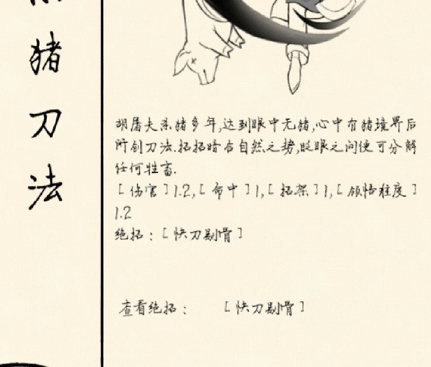 评价:和杀猪差不多,大路货武学,各方面都很一般。