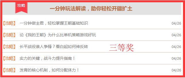 被选中的攻略根据质量的优异将展示在不同的板块中,当然奖品也有一定的差别哦~所以要参加的主君一定要发挥出自己的水平,写出高质量的攻略!