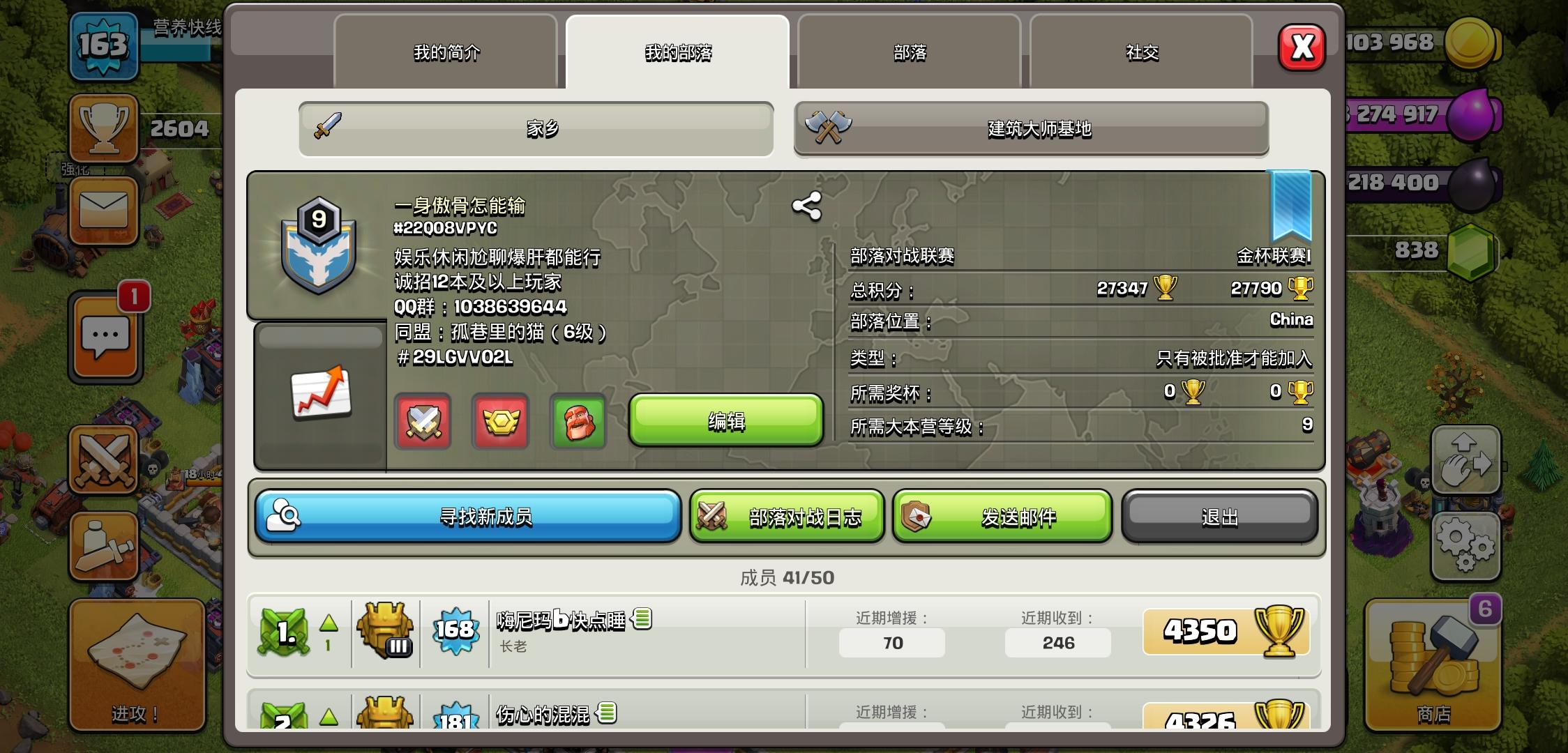 一部分13本去新部落打定级赛了,应该可以定级到大师段。为了新部落的发展,和本部落的联赛更加稳定,希望招收一些高本玩家。