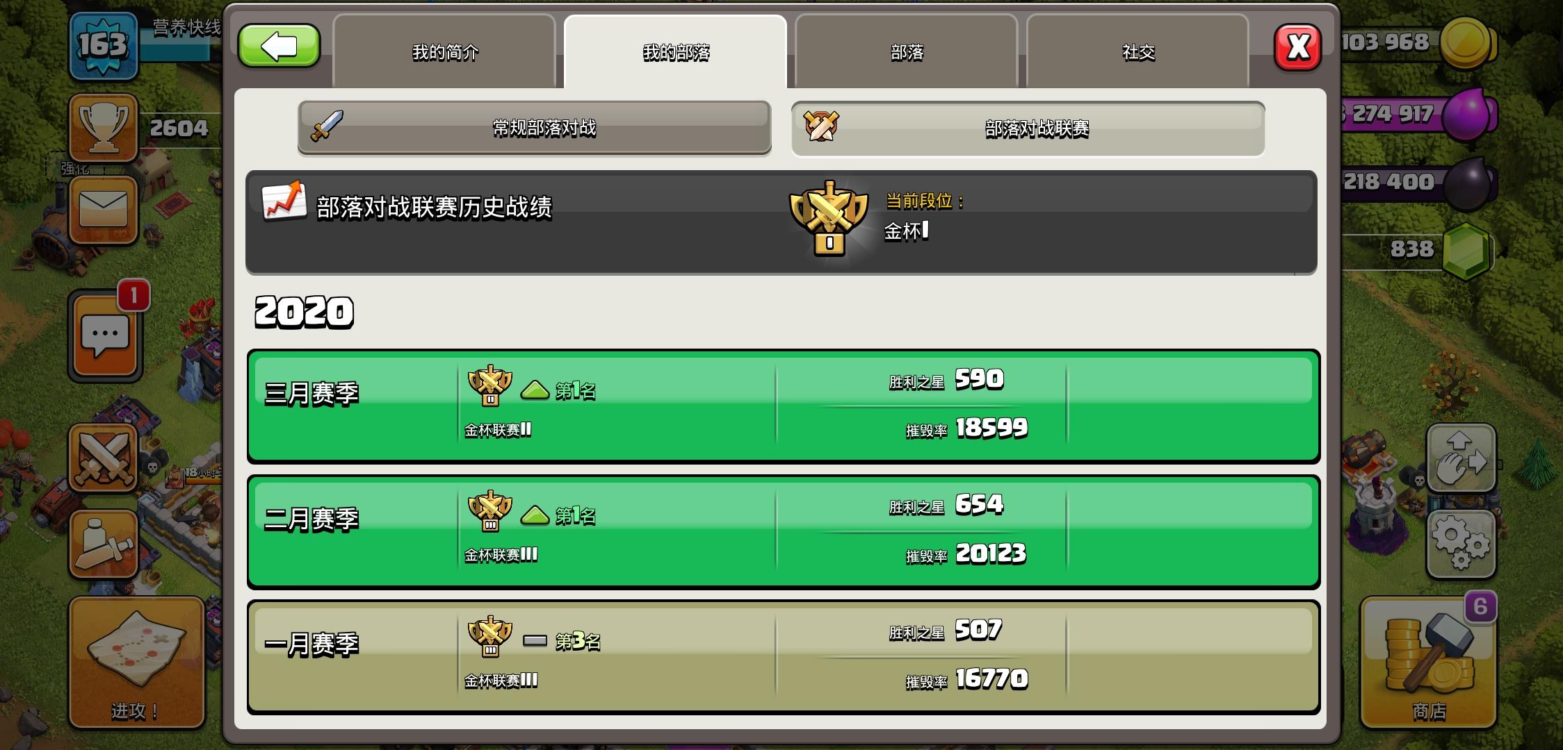 目前本部落金杯一,基本上可以稳定升到水晶一。