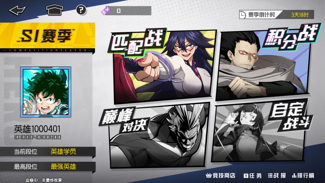 最强英雄这个项目一路走来,承载的期望和压力一直都在增加。4月份的时候,产品就像刚接受OFA个性的绿谷一样,虽有一个初步的体格(游戏内容框架),但身体机能素质(产品品质)离承载个性以及使用个性还存在很大的差距。也感谢参与上次测试的小伙伴们对我们的包容,使我们有了进一步提升自己的动力。