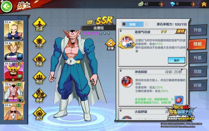 相较于以上两名战士,特兰克斯(未来·剑)和贝吉塔在技能伤害上稍逊一筹,但两名战士都拥有独特的技能机制:贝吉塔的绝技提升暴击,其他技能伤害较高,能够保证持续稳定的伤害数值。