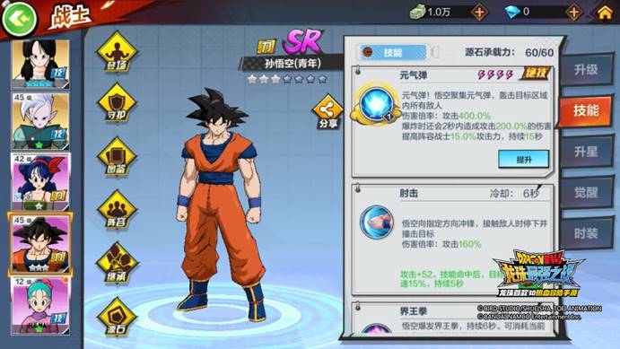 孙悟空(青年)和特兰克斯(未来超赛一)均拥有着大范围超高倍率的伤害以及对于队友的增益效果,持续时间长,足够一至两名战士打出完整的巨量伤害。