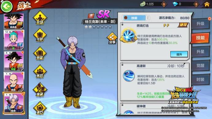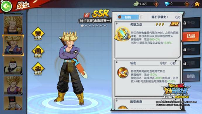 主要输出战士小编依然为大家提供两位“替补”,包括特兰克斯(未来·剑)和贝吉塔。