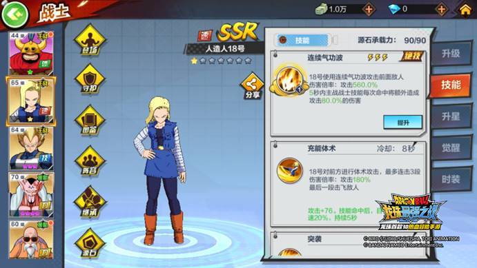 人造人18号的援助技能【连续气功波】则能在5秒内增加主战战士额外的技能伤害,配合上其他增益性的技能,可以让主战战士在5秒内打出爆炸伤害。