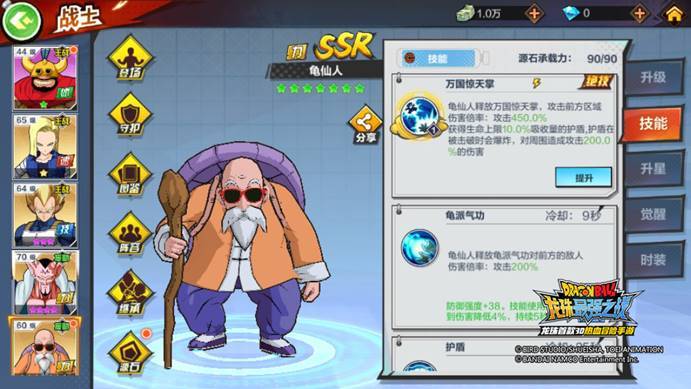 龟仙人的绝技【万国惊天掌】是援助卡中非常优秀的技能,除了造成超大倍率的伤害外,还可以让场上的战士获得足额护盾,护盾被击破时造成二次伤害。无论什么情况,护盾都对于主战战士大有帮助。