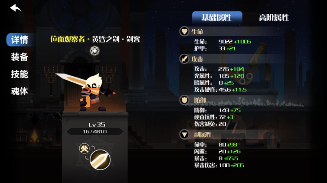 相信大家在玩黄昏剑士的时候比较喜欢玩第一形态,不喜欢玩第二形态(我是这样)。但是第二形态的输出非常的高、而且机动性非常的好。在属性方面刺客需要暴击和爆伤。在技能方面技能CD非常的短,而且三技能还有吸血,大招还可以制造一个分身,在输出方面非常的可以。