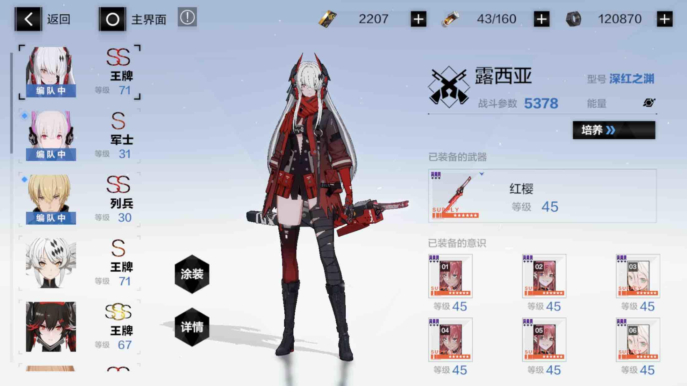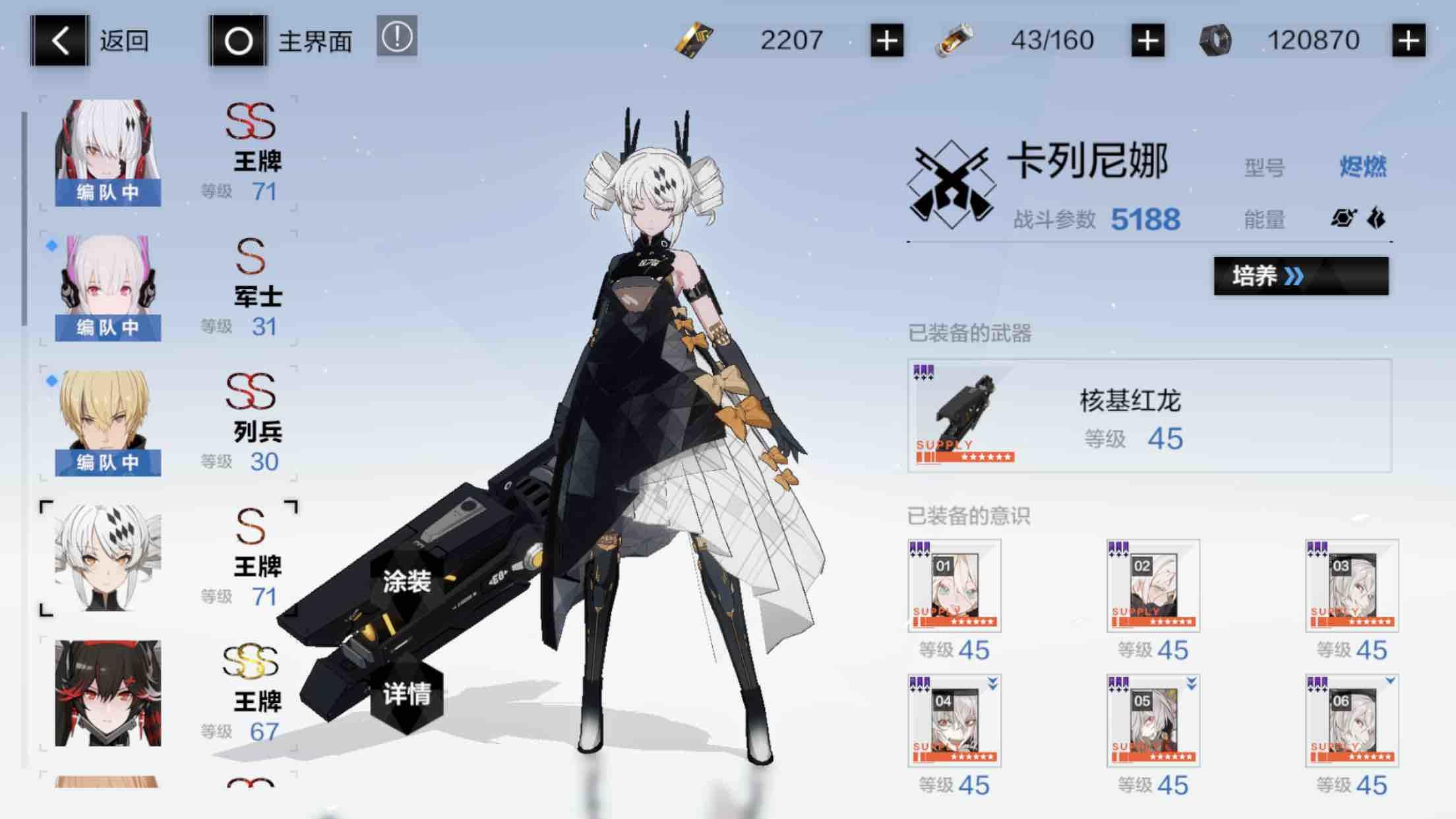 陆陆续续氪金了4500,我是个魂系老ass,所以面对高难据点,只要觉得可以打过,就死命去通,给据点八关设定个难度:1-4大关(简单),5-1(噩梦级别难打了一整天)5-2和5-3(有难度),6-7大关(简单),8-1和8-2(简单),8-3(梦魇级别难,其实卡穆很好打,是8-3后面两小关你c练度不高的话就难,打了两天)。这就是我打据点的感觉。下面是我的配置