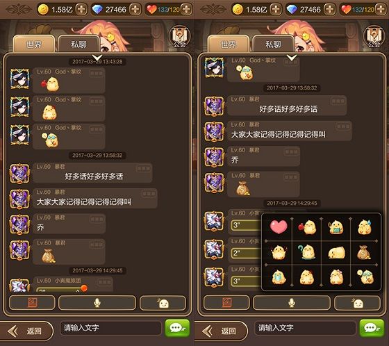 针对原有的世界频道和公会频道,《天命传说》也进行大幅度优化,玩家可以用文字或语音在频道内畅所欲言,还能更方便地添加好友,结识更多玩家,分享趣事。不仅如此,《天命传说》还别开生面地加入表情系统,让私聊、工会、多人秘境等新旧聊天变得更生动。