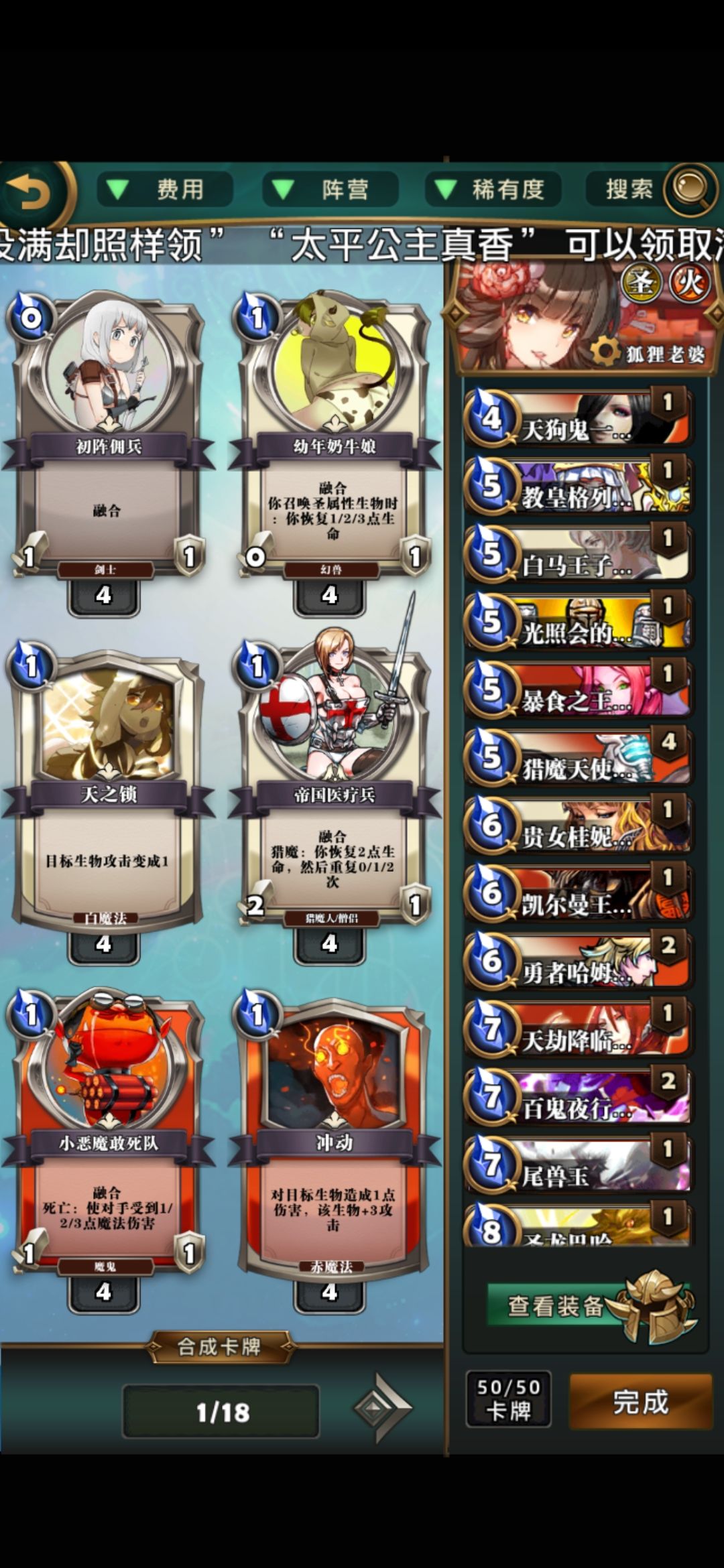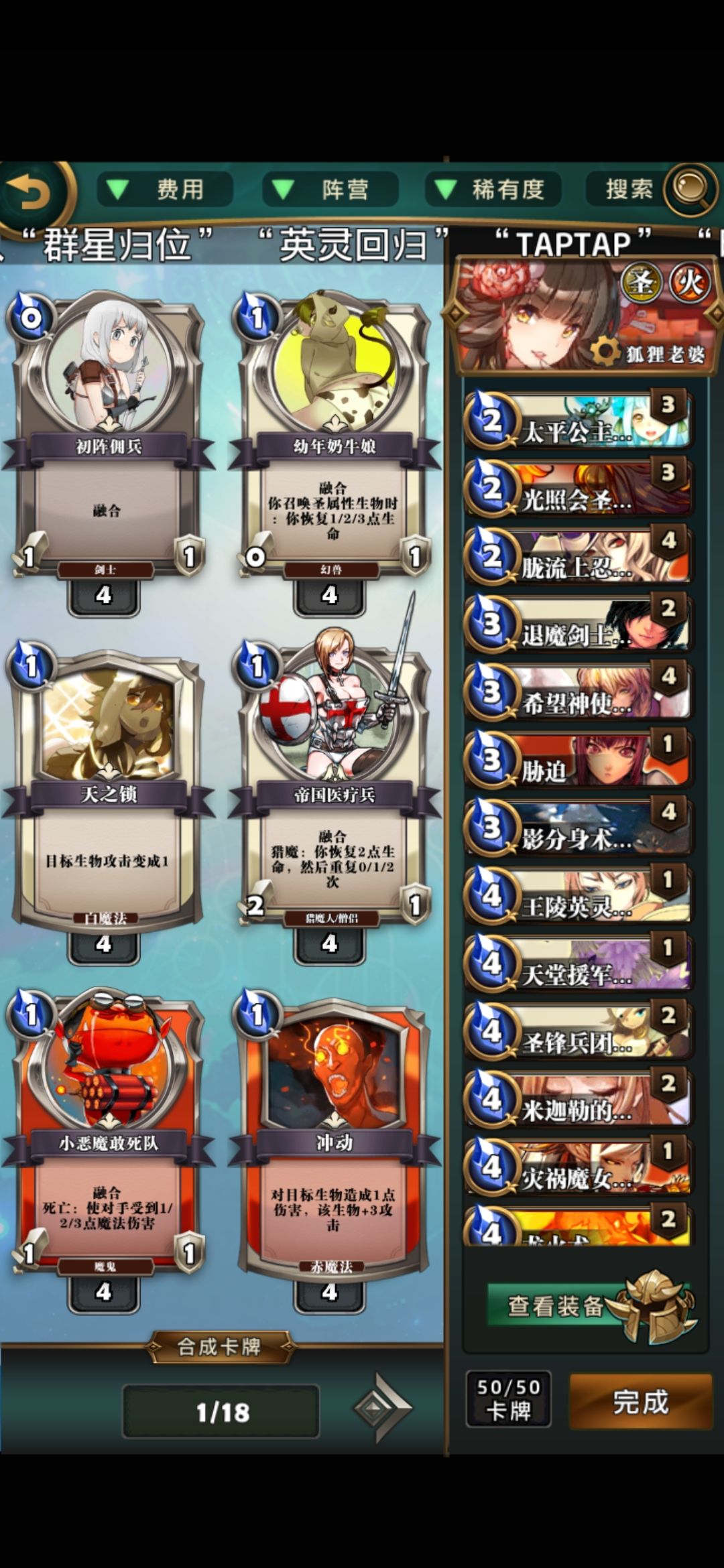 ~作为一个常年打炉石,影之诗的萌新,深知在没有资源的情况下快攻就是王道,但是本人一直很热衷于控制卡组,但现实不得不让我低下了头(没钱),扯远了,先上卡组~
